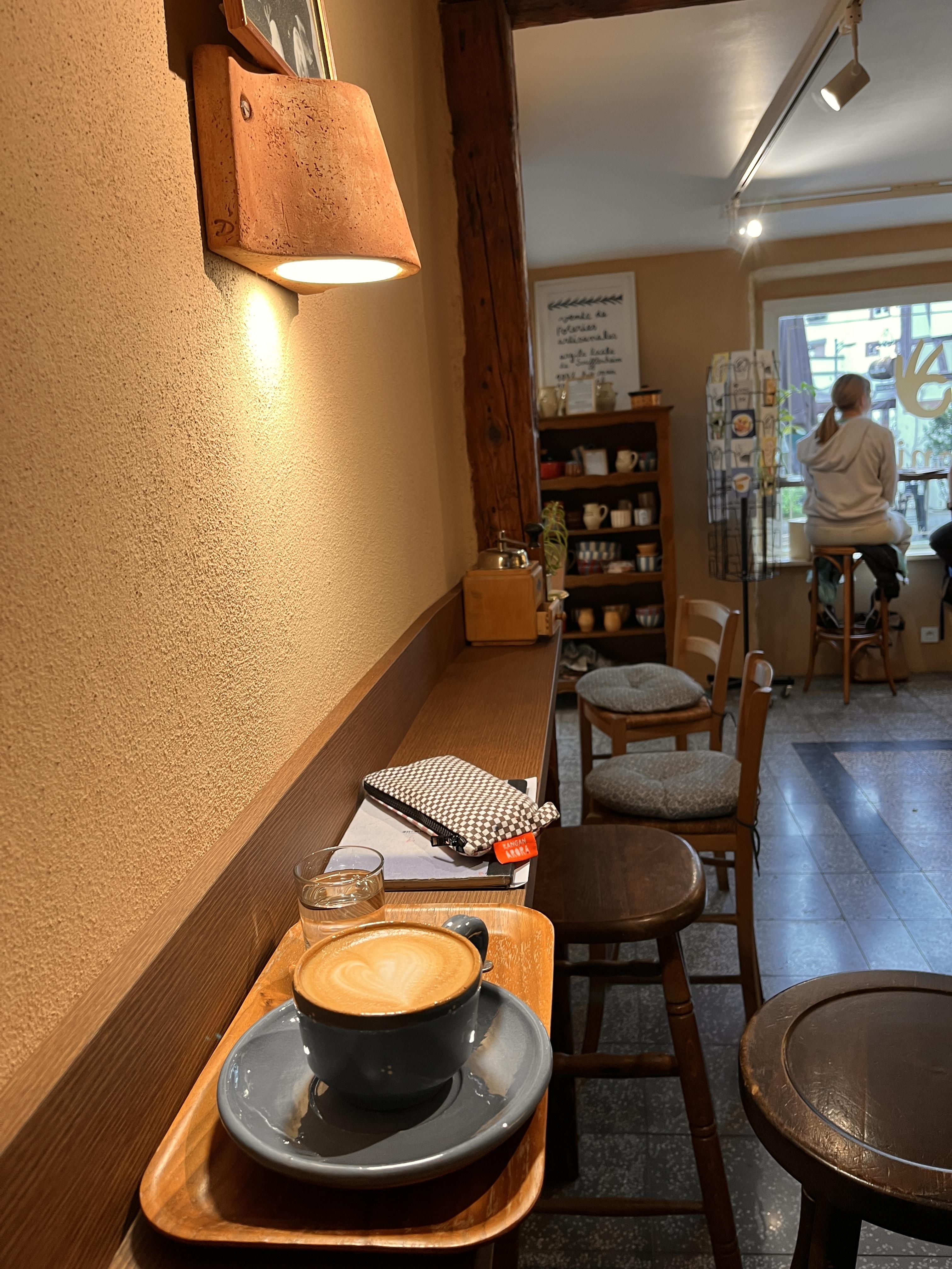 이내 비가 꽤 많이 내리기 시작했고 카페를 찾아 들어갔다. 아담하고 코지했음 ㅎ ㅎ 주인 아저씨께서 '원두 이거 이거 이거 있는데 뭐 할래?' 어쩌구 저쩌구. '춥고 조금 배가 허해서 라떼 마시려구요 이거랑 주세요.' 여기 라떼 맛있었어..!!! 책상이 좁지만 아무렴.
