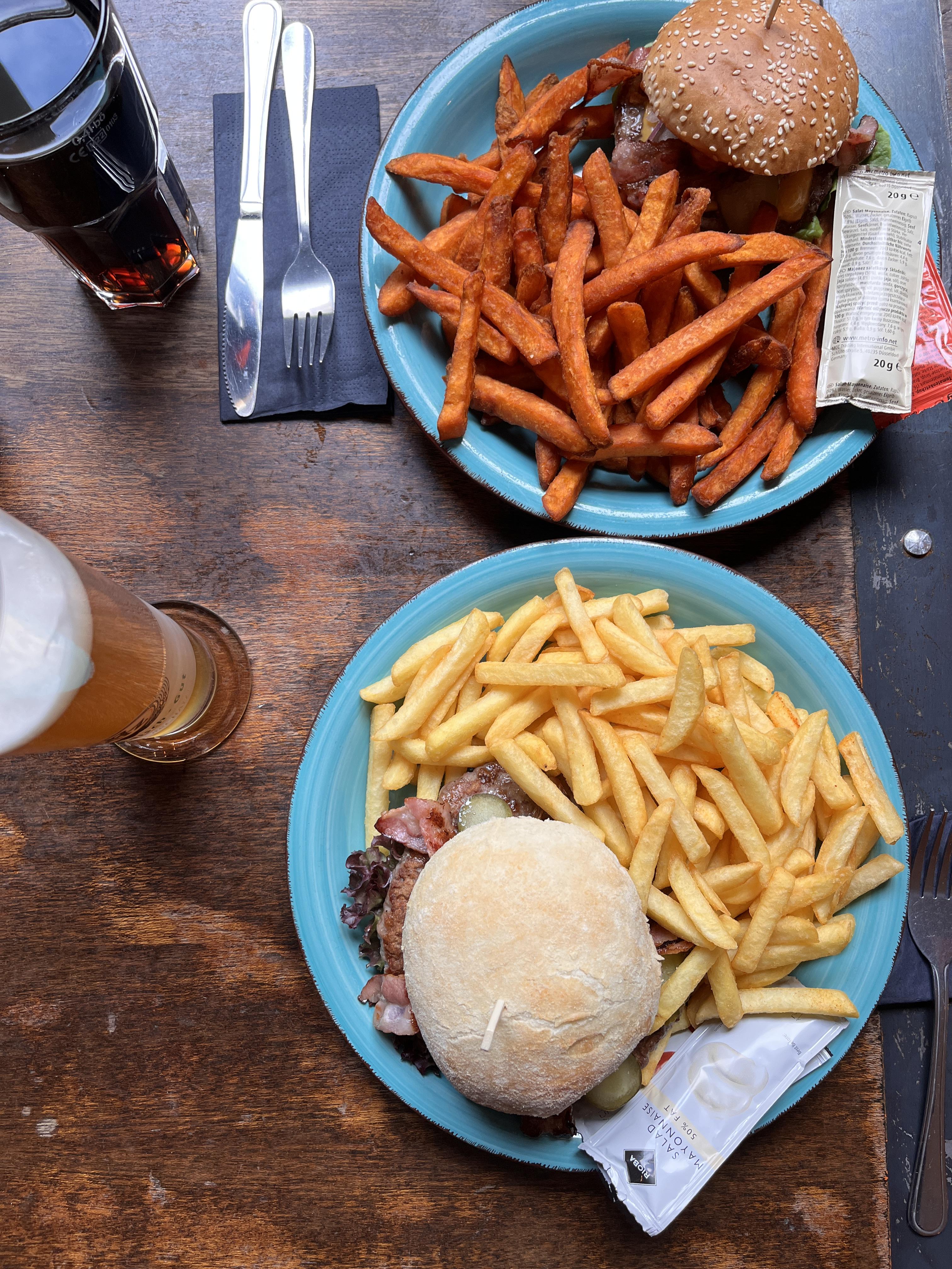 학교에서 볼일 보고서 밥 먹으로 어디갈까~ 하다가 시내에 버거집! 와아 여기 맛집이었음 ㅋ ㅋ ㅋ 드뎌 맥주도 하나 마셔주구. 아니 버거도 버건데 감튀도 감튄데 고구마 튀김 저자식이 진짜 미친놈이었음요 ㅎㅏ.. 추가 요금 내고 먹을 맛 맞아요 진짜 인생 고구마 튀김임 지금 쓰면서도 꼴깍.. 그리고 옆은 남자화장실인데 ㅋ ㅋ 맥주 스테인리스 케그 으로 만들어놓은 소변기. 독일 와서 만나니까 더 웃기잖어ㅋ