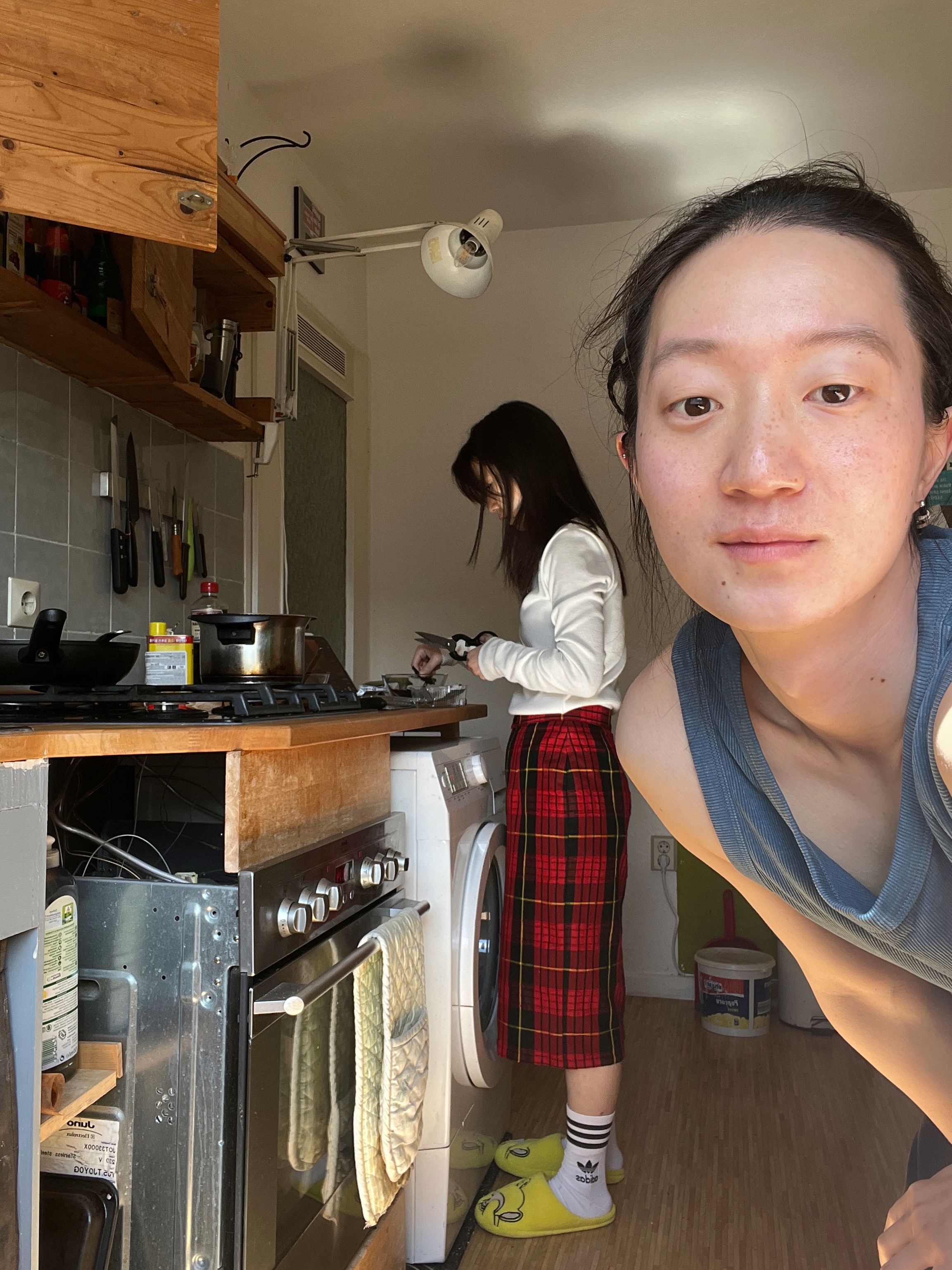 집에 들어와서는 한국에서 도착한 짐1 을 풀며 머쨍이의 옷 구경을 했는데 꿀잼이었다 ㅋ ㅋ 옷 하나하나 어디서 샀거나 받았거나 요렇게 입었거나 작업에 필요해서 샀거나 사연 들으면서 만져보고 오올~ 이거 너무 재밌어서 컨텐츠화 해야된다고 중간부터 동영상 찍었는데 15분짜리다.