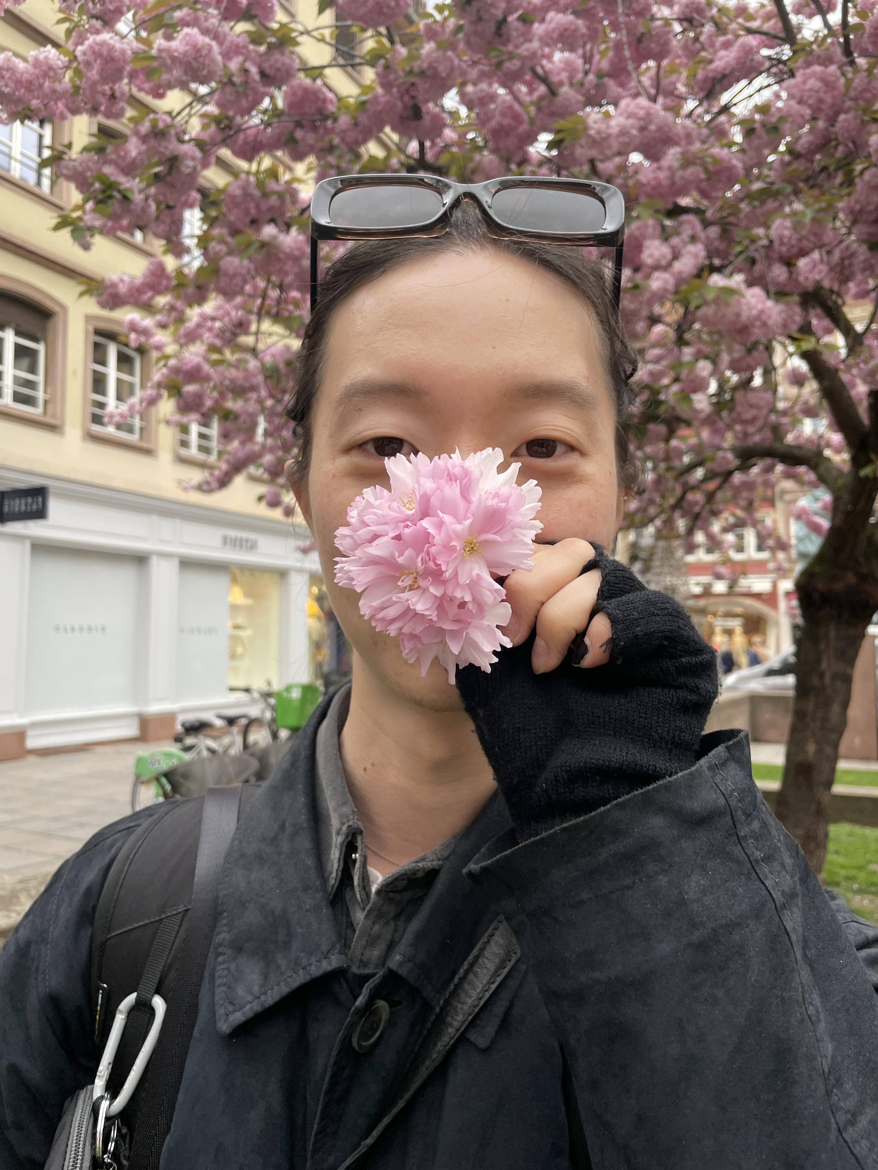 벚나무에 걸어놓은 샹들리에. 저러면 잘 팔리겠다 했음 ㅎ ㅎ 주먹 만한 꽃뭉치가 떨어져 있었다.
