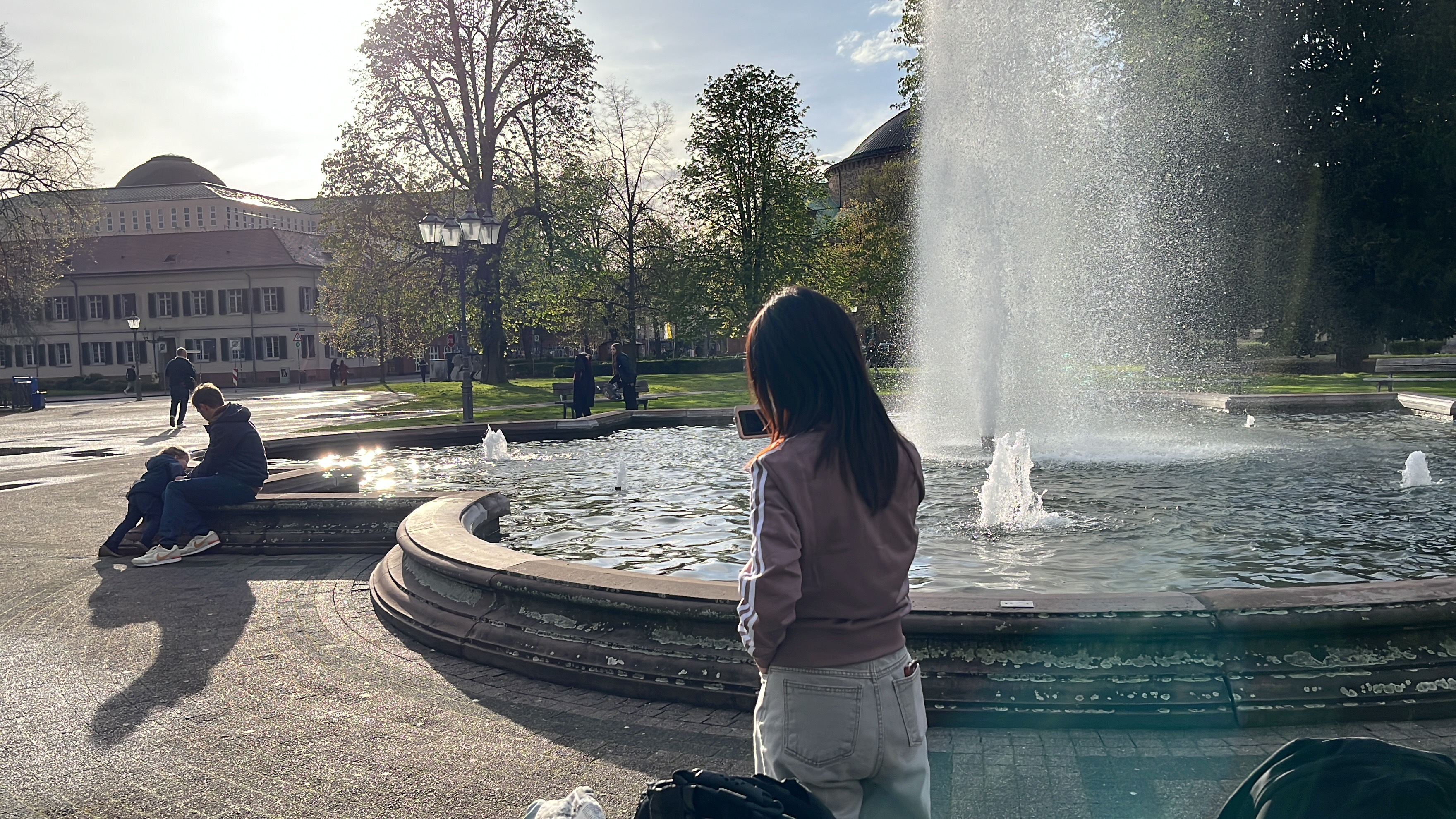 음료 사서 나왔는데 웬걸 해가 나왔잖어~ 해가 떴으면 바로 겉옷 벗어제끼고 맨살에 햇살 테라피 해야되는 유럽 거주자가 되었다 . . 바로 반팔 직행. 자연사 박물관 앞에 분수도 있고~ 동네가 확 예뻐보였어