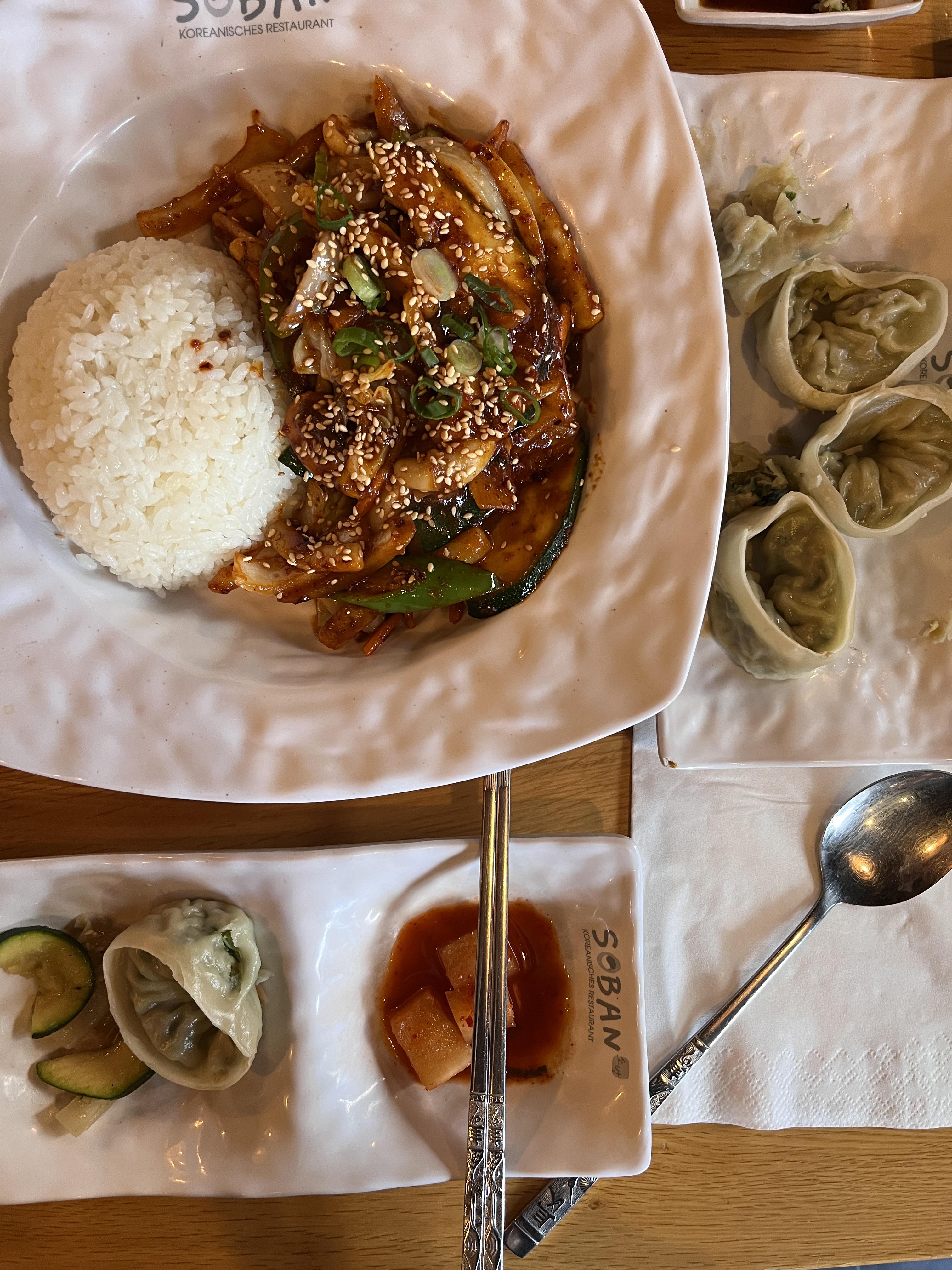집중도 있게 전시를 관람하고 배고파진 우리는 한식당으로 달려갔다. 와 . . 정말 훌륭했던 칼스루에 한식집 '소반'. 진짜 존맛이었음 뚝배기 불고기랑 불맛 미쳐버린 오징어덮밥.... 침 질질 꼴깍이다 나 완전 기절이다. 연신 찡그린 미간. 인기 맛집이라 자리 겨우 하나 잡았다 ㅎ 정신없이 맛있게 먹으면서도 고닥교 때 얘기를 했는데 흥미로웠다 ㅋ ㅋ 정말 그땐 그랬고~ 알고 있었지만 다시 돌아봐도 고등학생 때까지 난 좁은 시야로 아무 걱정 없이 행복하게 지냈던 것 같다 행운이게도. 재미도 내가 아는 만큼 공부도 그냥 재밌는 만큼. 그랬던 우리가 계속해서 춤을 추고 유학을 와서 서로 옆나라에 발붙이고 있다니. 4년전 내가 파리에 처음 왔을 때부터, 독일에 가기 한 달 전에도, 소라를 만나러 가는 길에도 만나서도. 늘 기묘하고 신기한 사람의 인연과 마음이라는게 십년도 더 넘은 우리 고등학교 시절부터 알게모르게 자라고 쌓여왔음이 실감 났다. 느슨했던 공백 톡톡 채우기.